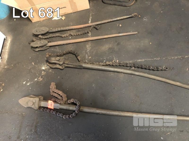4 x LONG HANDLE CHAIN PIPE CLAMPS, 2 x 1600mm, 2 x 1200mm & 4 x G CLAMPS