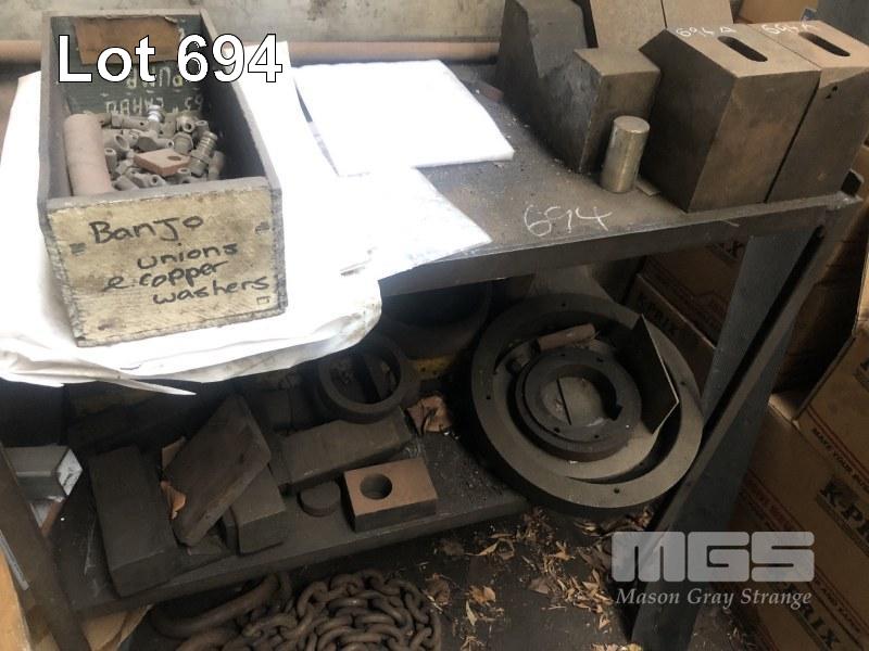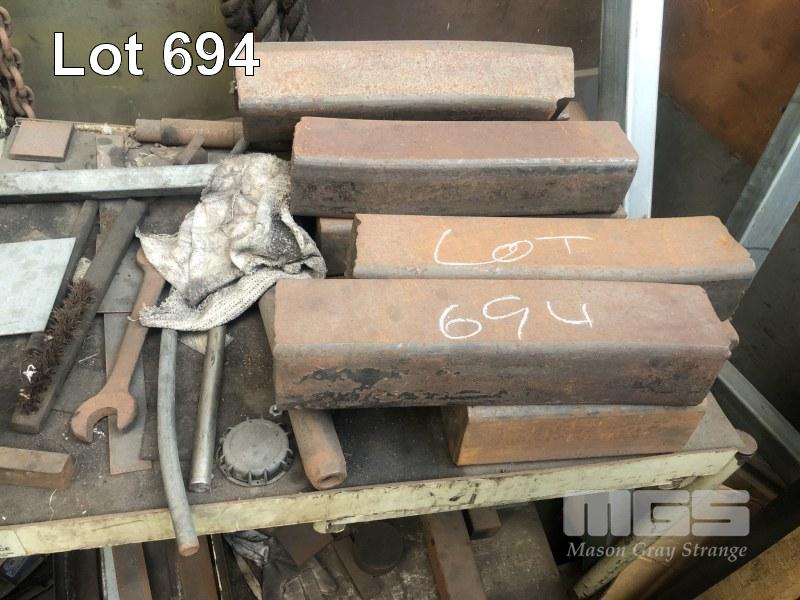 ASSORTED STEEL BAR OFFCUTS, 2 TIER TROLLEY, 2 TIER STOCK RACK & 2 x SETS CHAINS
