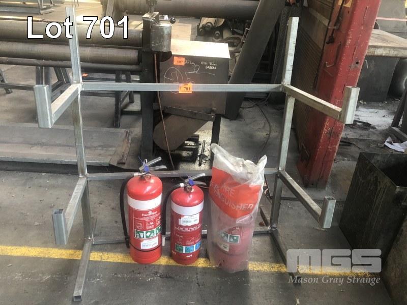 2 TIER STOCK RACK & 2 x 9kg POWDER FIRE EXTINGUISHERS