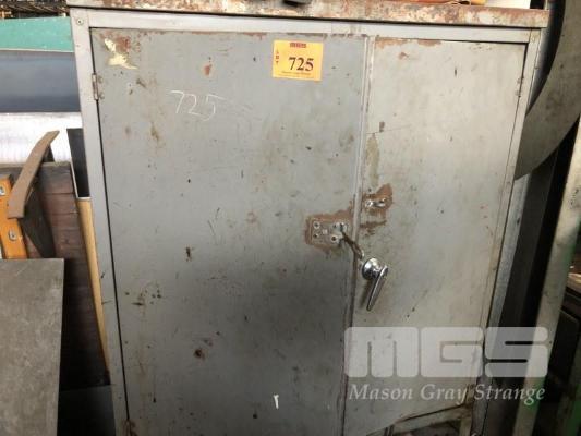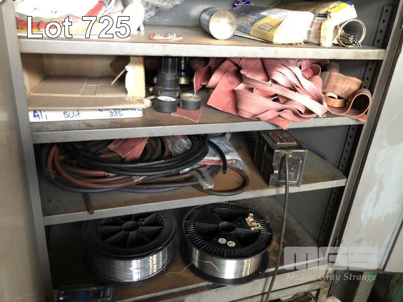 STEEL 2 DOOR STOCK CUPBOARD, 1640 x 920 x 450mm (D) & CONTENTS 2 COILS STAINLESS STEEL MIG WIRE, ECLIPSE DEMAGNETISER, WELD ACCESSORIES, HOSES, GAUGES, MIG INNERS
