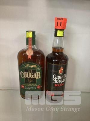 COUGAR BOURBON WHISKY, 750ml & CAPTAIN MORGAN RUM, 750ml