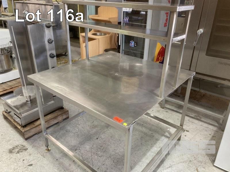 STAINLESS STEEL ISLAND BENCH, 115 x 120cm WITH 2 TIER OVERSHELF