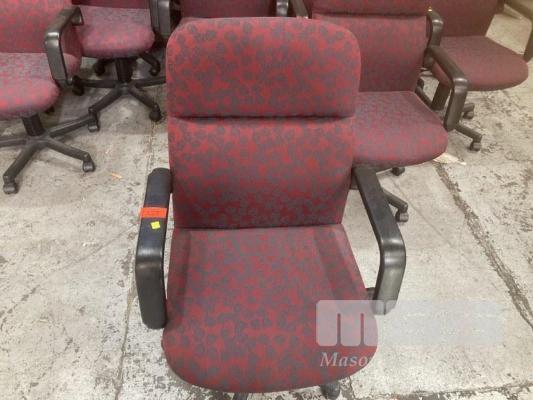 8 x GAS LIFT ARM CHAIRS, MAROON PATTERN FABRIC
