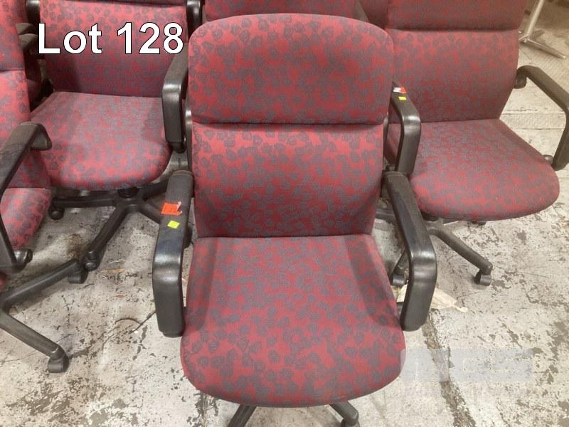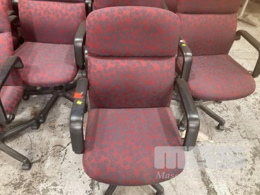 8 x GAS LIFT ARM CHAIRS, MAROON PATTERN FABRIC