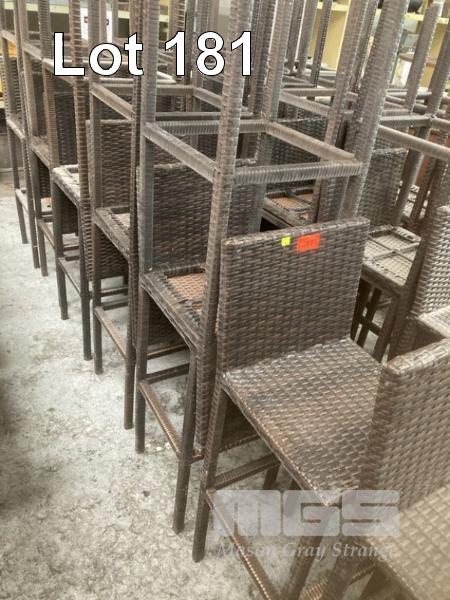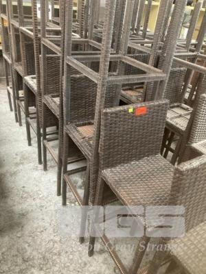 12 x BROWN WICKER BAR STOOLS, (SOME WORN)