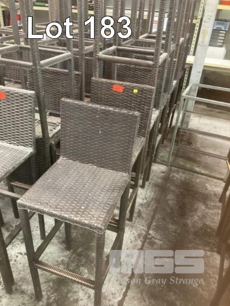 10 x BROWN WICKER BAR STOOLS, (SOME WORN)