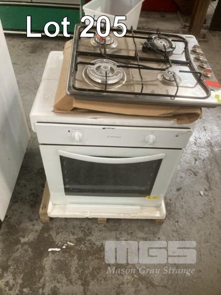 ELECTRIC WALL OVEN, WESTINGHOUSE, WHITE FINISH & STAINLESS STEEL 4 BURNER GAS COOKTOP, ( MISSING FLAME CAPS )