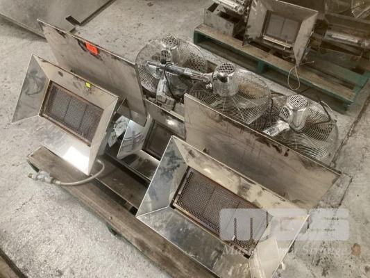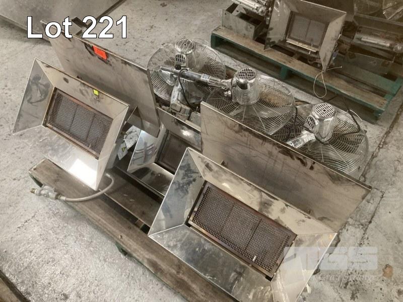 3 x WALL MOUNT INDUSTRIAL FANS, 16", 240V & 3 x WALL MOUNT GAS HEATERS