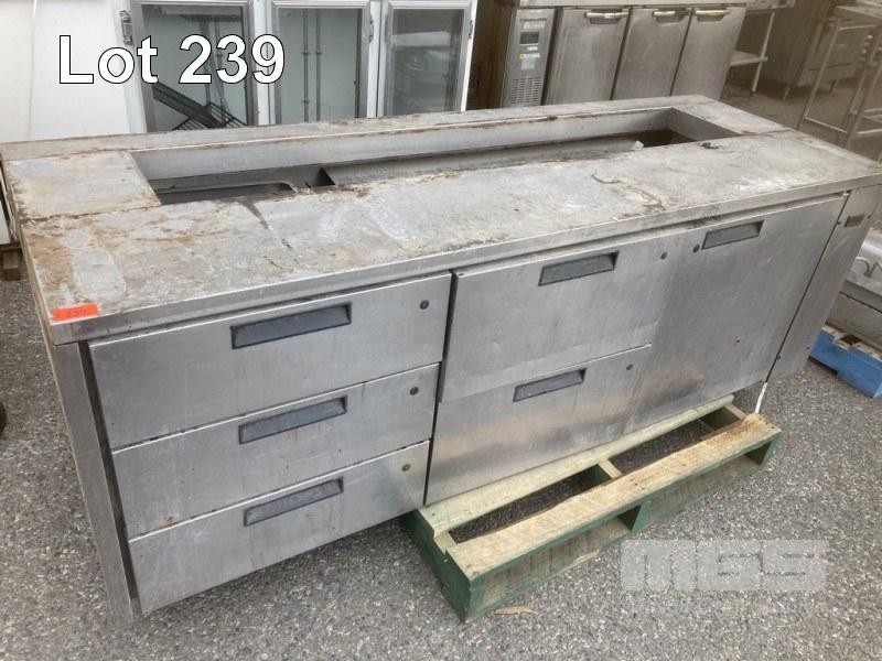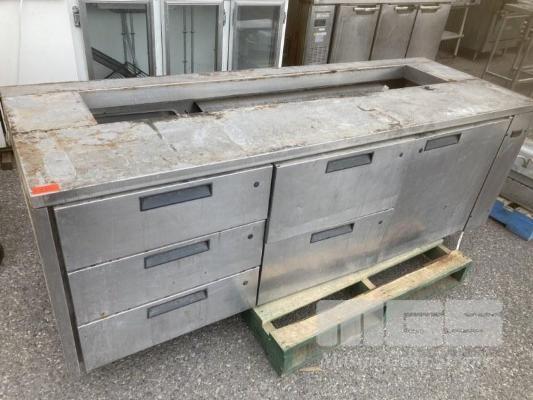 STAINLESS STEEL CABINET, 5 x DRAWER, 1 x DOOR, (POOR CONDITION)