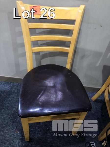 16 x DINING CHAIRS, BENTWOOD FRAME, NATURAL TIMBER FINISH WITH BROWN VINYL SEAT