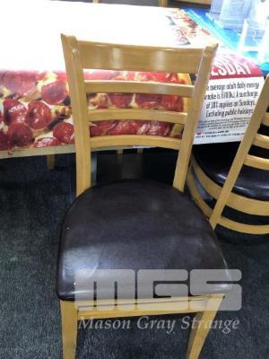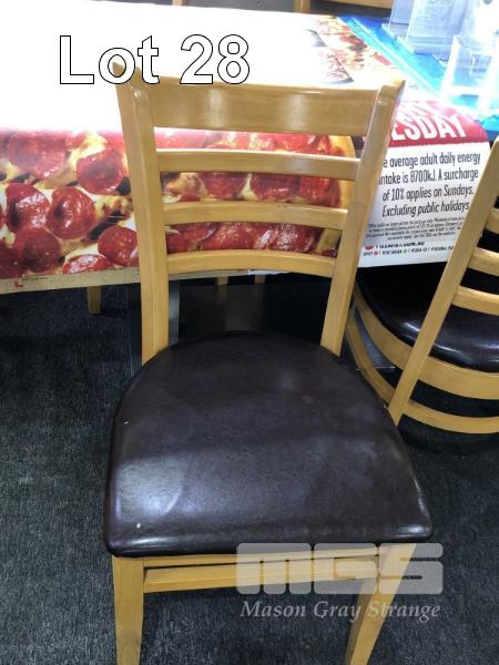16 x DINING CHAIRS, BENTWOOD FRAME, NATURAL TIMBER FINISH WITH BROWN VINYL SEAT