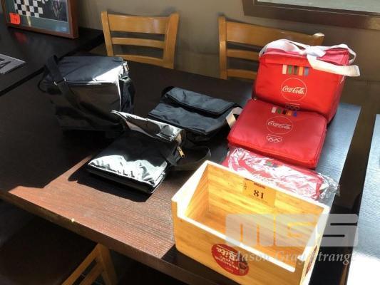 6 x PROMOTIONAL COOL BAGS, BLACK & COCA-COLA & COCA-COLA STRAW BOX
