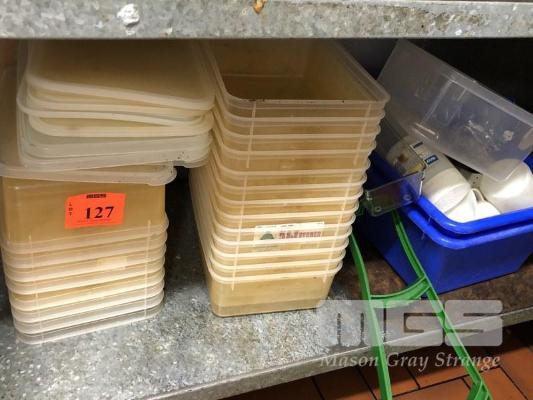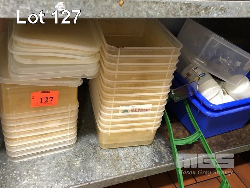 21 x PLASTIC CONTAINERS, 5 LITRE & 15 LITRE BLUE TUB