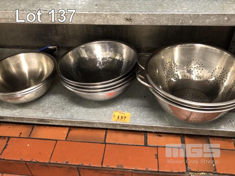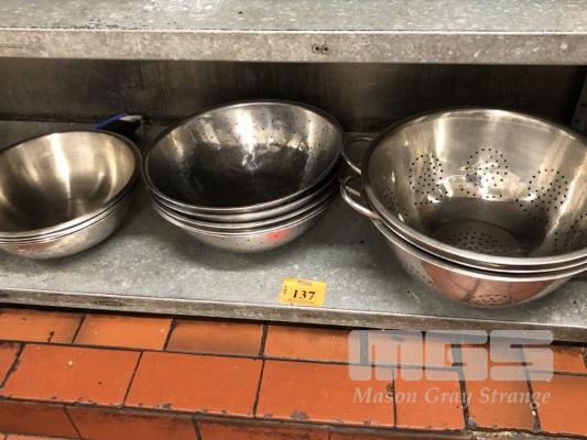 8 x STAINLESS STEEL LARGE COLANDERS & 3 x STAINLESS STEEL CHEFS BOWLS