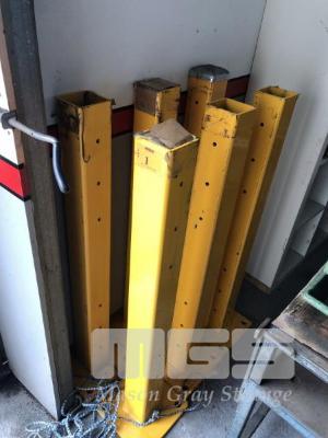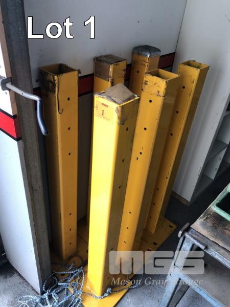 6 x YELLOW BOLLARDS, 1060 x 100mm SQUARE WITH HEAVY DUTY BASE PLATE