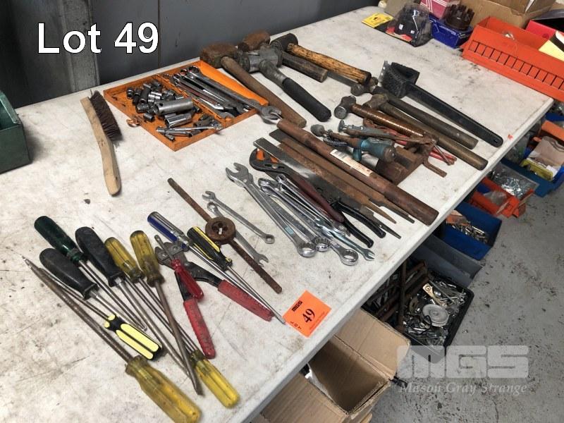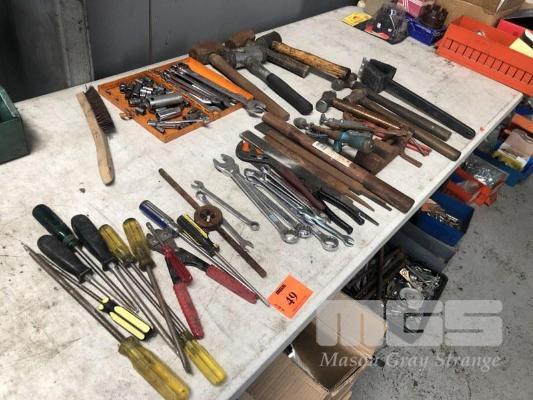 ASSORTED TOOLS INC SPANNERS, SOCKETS, HAMMERS, GRIPS, SCREWDRIVERS, FILES, ETC