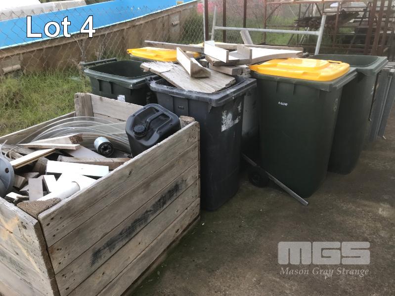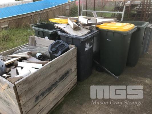 6 x WHEELIE BINS & 1 x CRATE FIREWOOD OFFCUTS