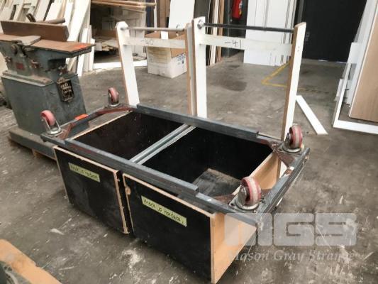 4 WHEEL TROLLEY, FABRICATED STEEL FRAME & 2 X SPARE PARTS TROLLIES, 4 WHEEL