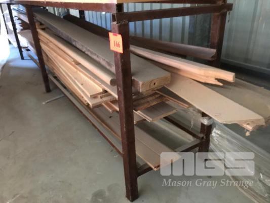 STEEL STOCK RACK & ASSORTED PROFILE PINE & HARDWOOD TIMBER