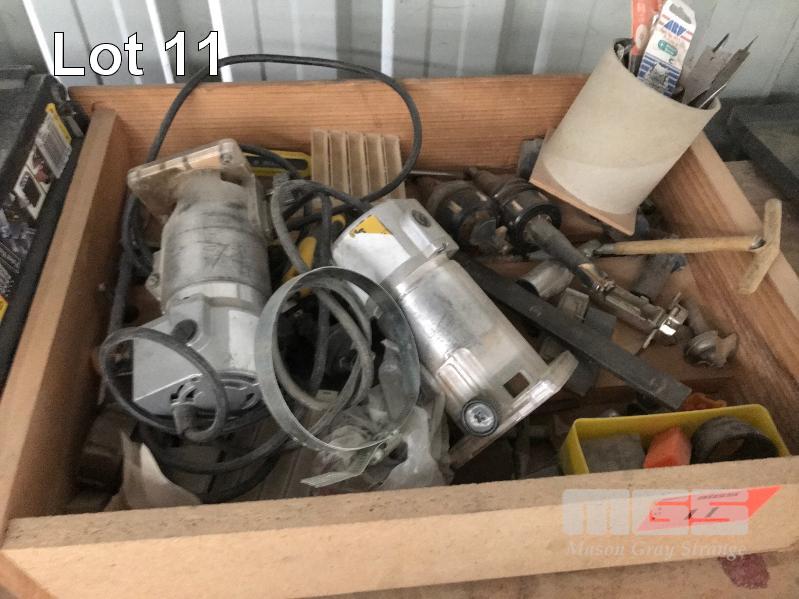 2 x ELECTRIC LAMINATE TRIMMERS & ASSORTED TOOLING