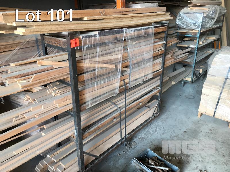 2 x STEEL FRAMED 5 TIER TROLLEYS & CONTENTS TIMBER SKIRTING & EDGING