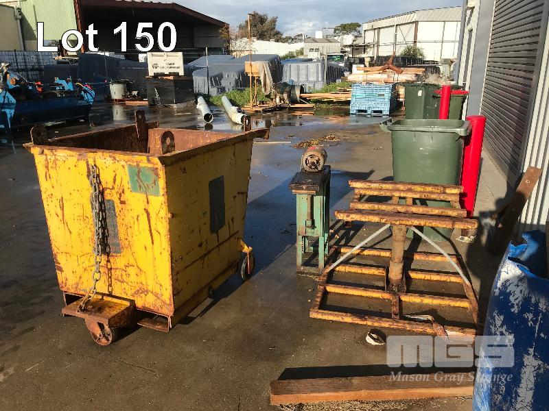 STEEL 4 WHEEL TIPPER BIN & COMPACTOR, PEDESTAL DOWEL BORER