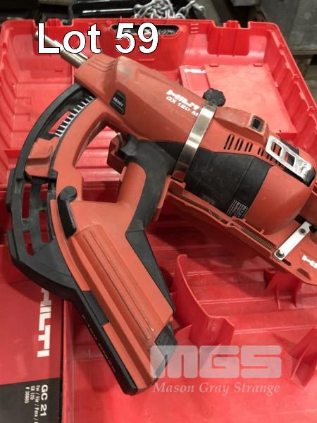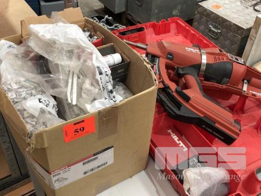 HILTI GX120 GAS POWERED ACTUATED NAIL GUN, INCASE, WITH CARTON OF HARDWARE PLUS 2 MTR EXTENSION HANDLE.