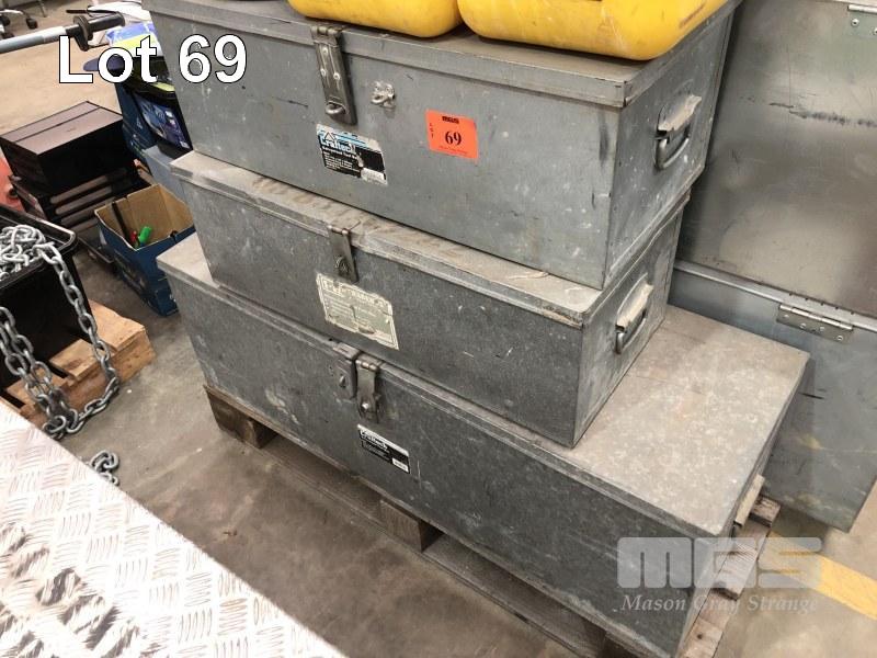 3 x GALV STEEL SITE BOXES, 1150 x 380 x 380mm, 760 x 330 x 260mm