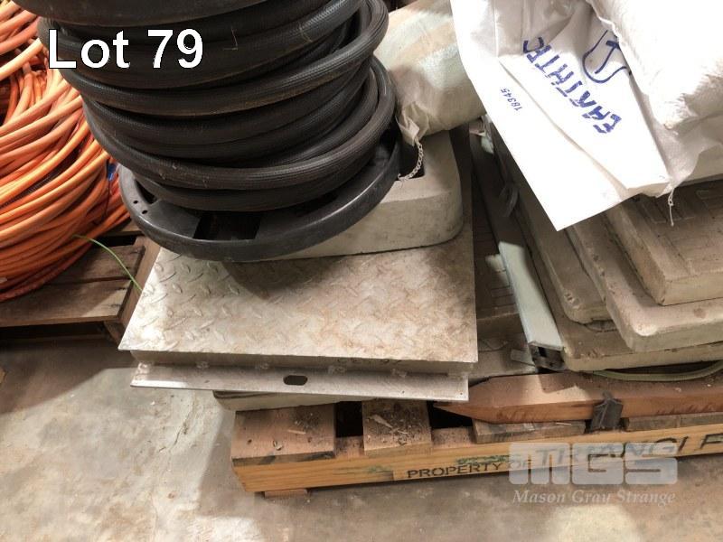 QUANTITY 2 x PALLETS, PIT COVERS, STEEL & CEMENT, INSTANT BITUMEN & CONCRETE, STORM WATER PIPING