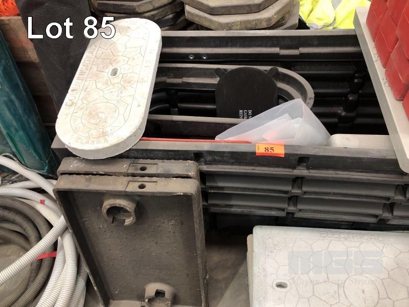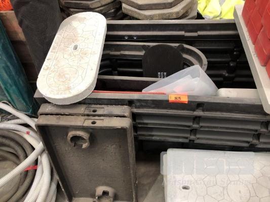 PLASTIC IRRIGATION PIT, 1200 x 500mm, PLUS SMALL PIT 600 x 300mm 5 x CONCRETE COVERS, 2 x CAST IRON COVERS