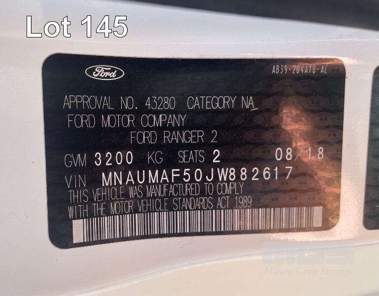 2018 FORD PX MKII RANGER SINGLE CAB CHASSIS UTE 4X4 REG: S 512 BXJ (SA) VIN: MNAUMAF50JW ODO: 112,575 3.2L, MANUAL, DIESEL, 4X4 CENTRAL LOCKING, POWER STEERING, FITTED WITH ELECTRICIANS CANOPY SERVICE BODY, 3 WAY DOOR, PARTS SHELVES, CONDUIT HOLDERS. REVERSE CAMERA (NO PAPERS, WITH 1 KEY/S, WITH OWNER'S MANUAL, WITH SERVICE BOOKS)