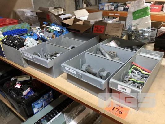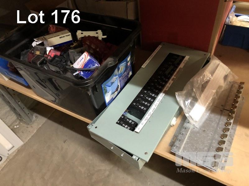 CONTENTS OF 2 SHELVES, ACTIVE & NEUTRAL LINKS, 240v PLUGS, CONTACTORS, 415 & 240v PLUG BASES, VARIOUS HARDWARE ETC.