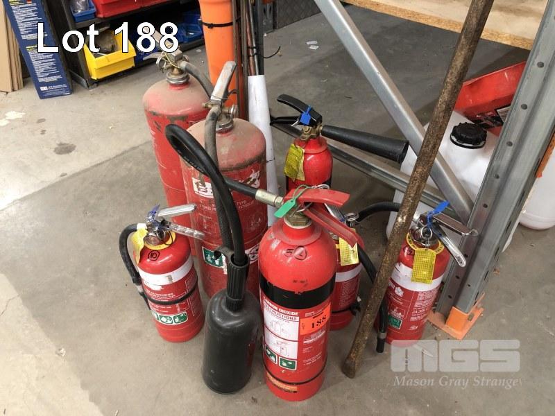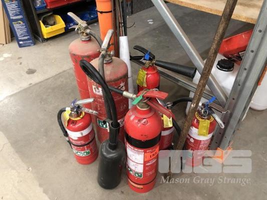 7 x FIRE EXTINGUISHERS, 2.5kg POWDER, 3.5kg, 2 x 9L WATER ETC.