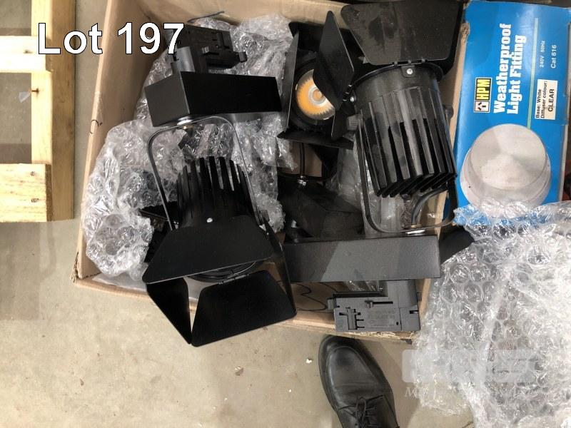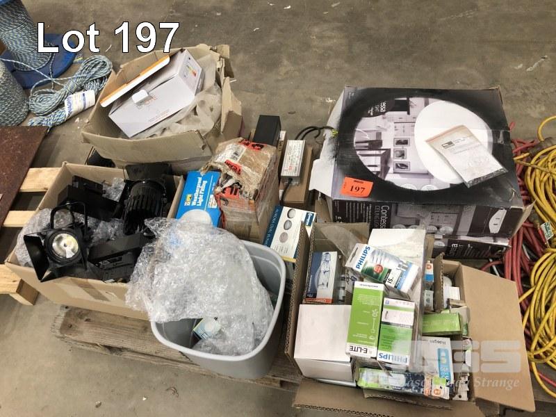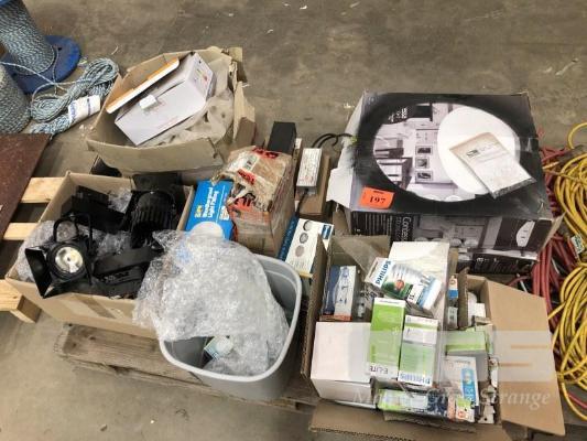 CONTENTS OF PALLET, TRACK LIGHTS, LED, LIGHT GLOBES, WEATHER PROOF LIGHT FITTINGS ETC.