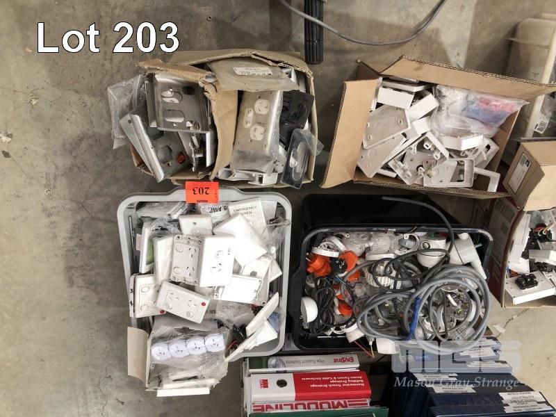 6 x CARTONS ASSORTED ELECTRICAL FITTINGS, PLUGS, GPO'S, SWITCHES, MOUNTING BLOCKS ETC.