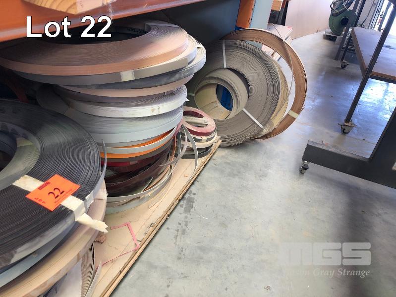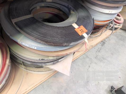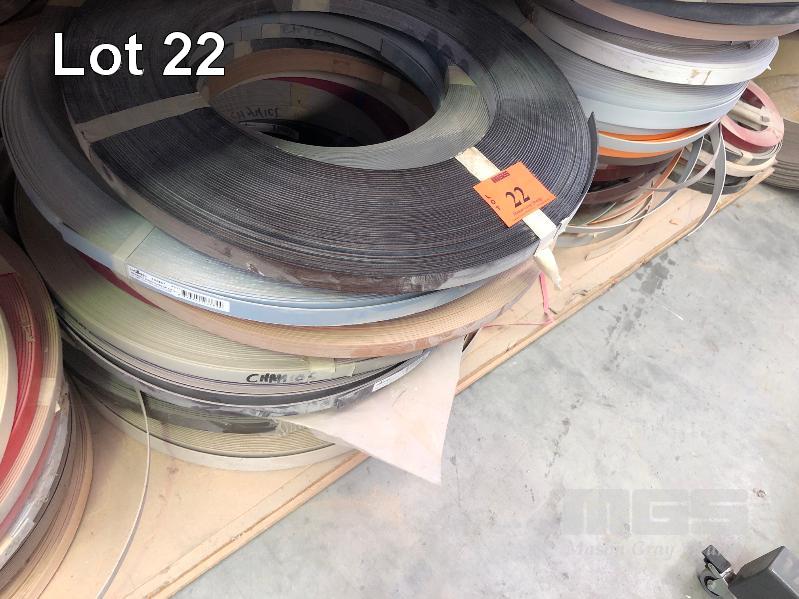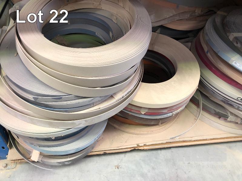 LARGE QUANTITY ASSORTED LAMINATE EDGING APPROX 80 x ROLLS, CONTENTS OF 1 SHELF