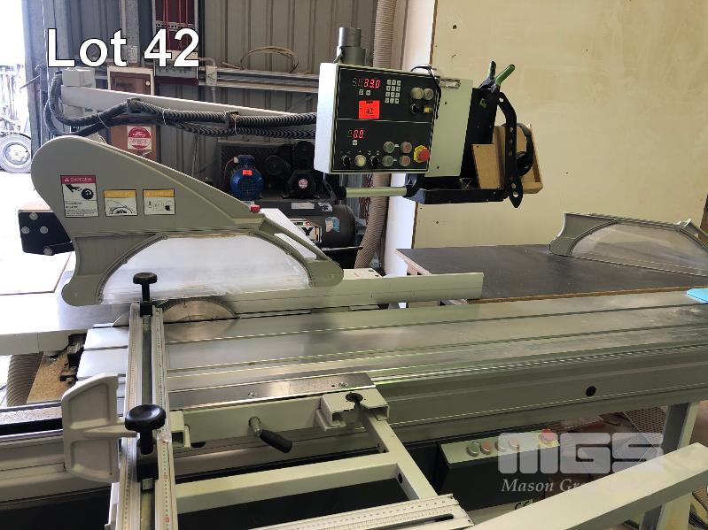LMA PANEL SAW, MODEL: LINEA3800E1, 3800mm, SLIDING TABLE 3800 x 395mm, MAX CUTTING HEIGHT 105mm @ 90 DEGREES, 70mm @ 45 DEGREES, WITH SCORING BLADE, DIGITAL CONTROL PANEL, 7.5hp, 415v, WITH MANUAL