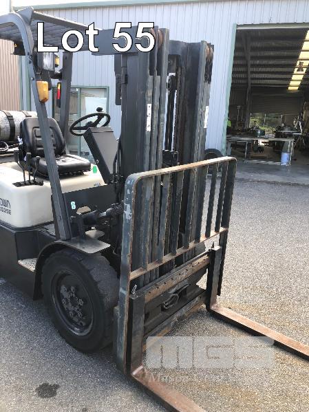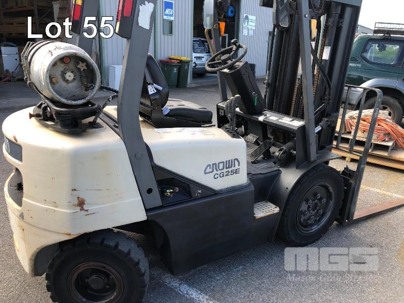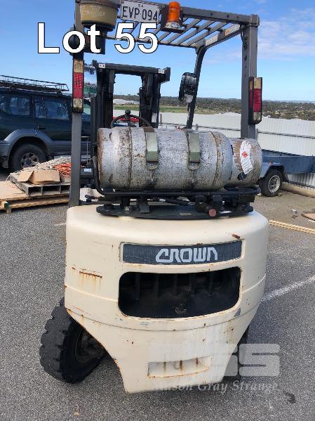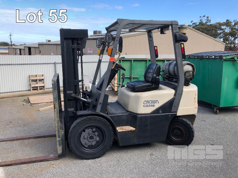 2005 CROWN CG25E-3 3 STAGE CONTAINER MAST FORK LIFT REG: EVP094 (SA) LPG, RATED 2185kg, SOLID, TYRES, SIDE SHIFT, NEW SEAT, FLOOR MAT, HEAD LIGHTS, SWING DOWN BOTTLE LOADER (WITH PAPERS, WITH 1 KEY/S, NO OWNER'S MANUAL, NO SERVICE BOOKS)