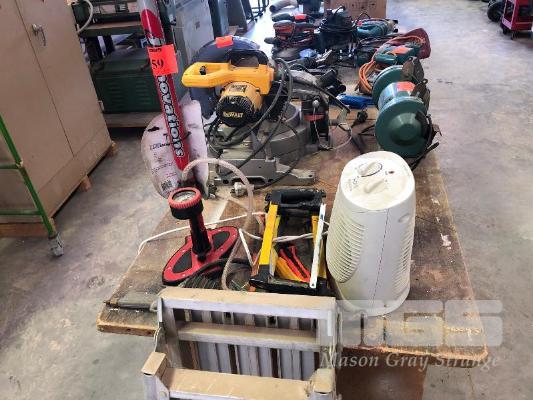 TYRE PUMP, INFLATION GAUGE, 3 x HAMMERS, OFFICE HEATER, GORILLA ALLOY STEP 2 HACKSAWS
