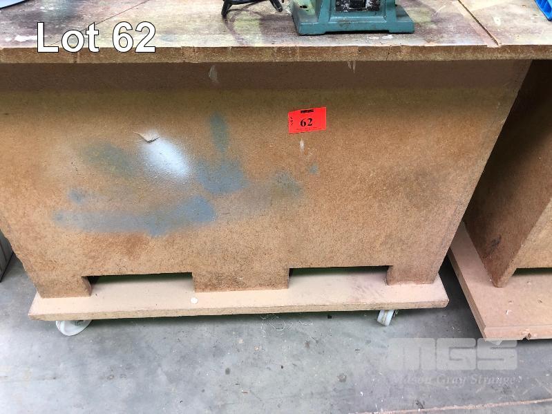 2 x MOBILE TIMBER BENCHES, 750 x 1200mm