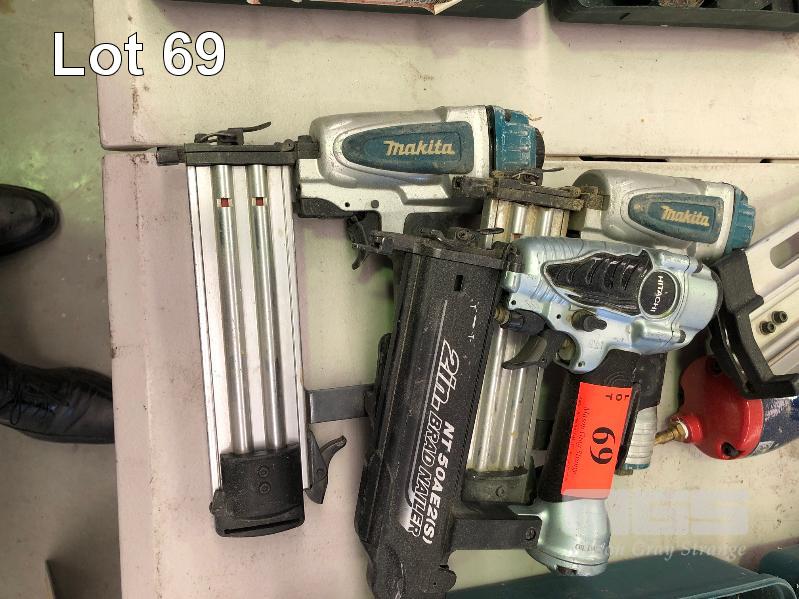3 x PNEUMATIC NAIL GUNS, 2 x MAKITA, 1 x HITACHI, SUIT 50mm NAILS