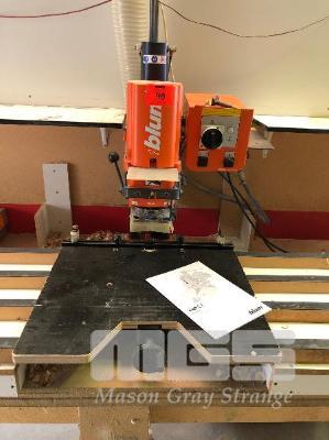 BLUM MINI PRESS P, MODEL: M53-1050, WITH TABLE, 240 volt (NOTE INCLUDING BENCH)