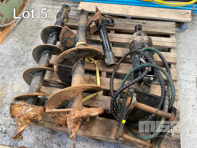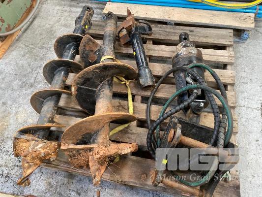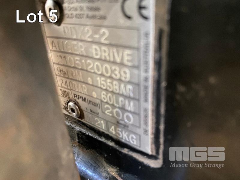HYDRAULIC AUGER DRIVER ATTACHMENT, DIGGA MOD: PDX2-2 SUIT MINI EXCAVATOR FITTED WITH QUICK HITCH 30mm PINS 240/155 BAR, 200 RPM MAX, 60mm DRIVER WITH 2 x AUGERS, 300 & 400mm DIAMETER & WITH STUMP SHREDDER ATTACHMENT, 250mm DIAMETER