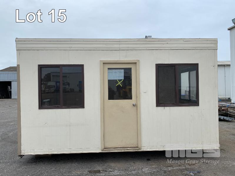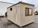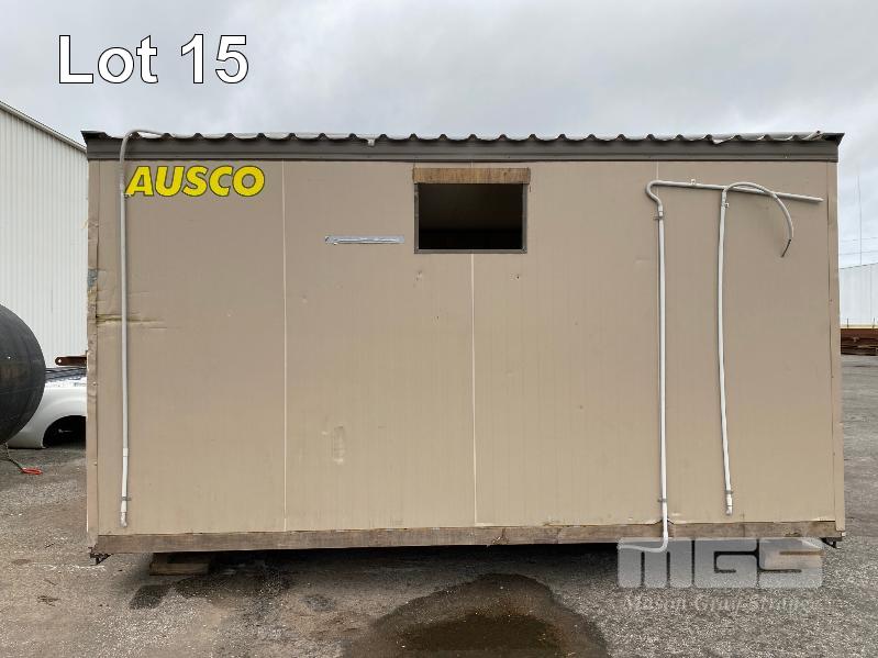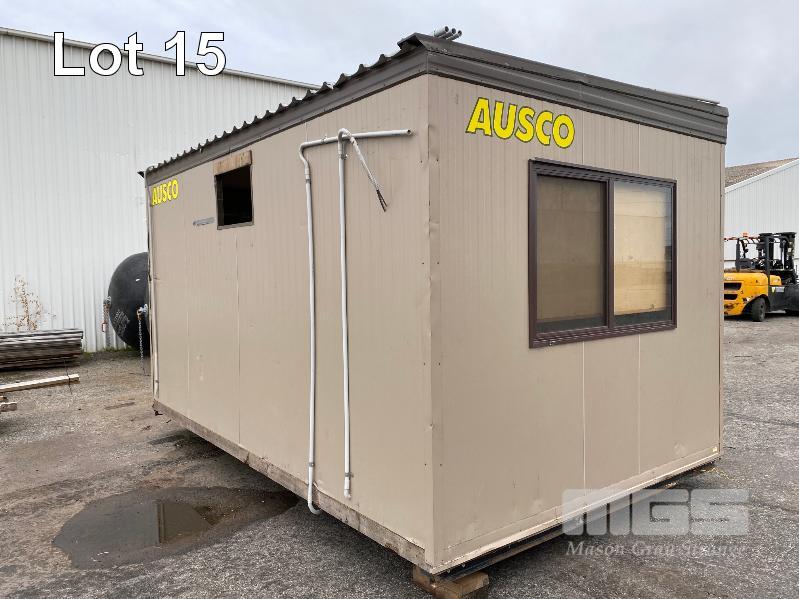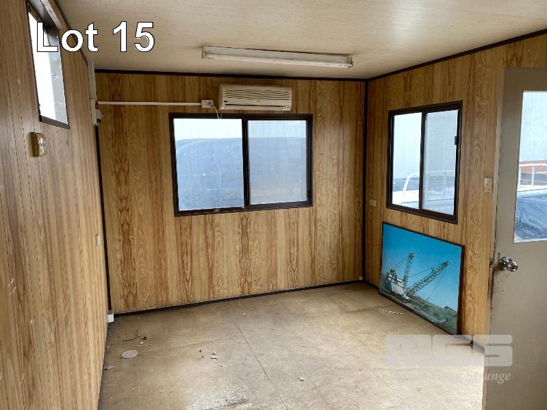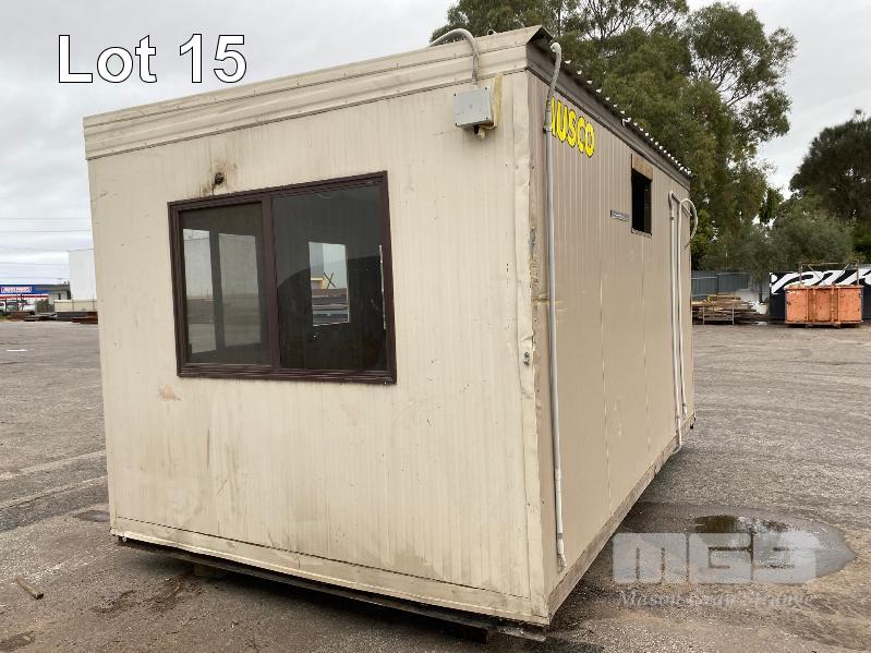 TRANSPORT BUILDING, AUSCO 4820 x 3010 x 2820mm (H) BROWN/CREAM COLOURBOND EXTERIOR, TIMBER PANEL INTERIOR SINGLE DOOR ENTRY 4 x SLIDING WINDOWS 240V POWER & LIGHTING STEEL SKID BASE, WATER TIGHT EXCEPT HOLE FOR THROUGH WALL A/C UNIT