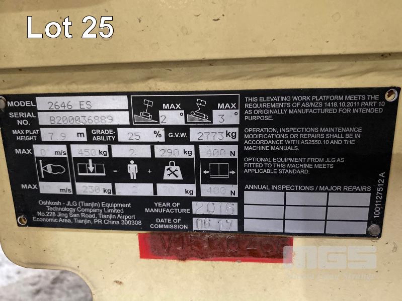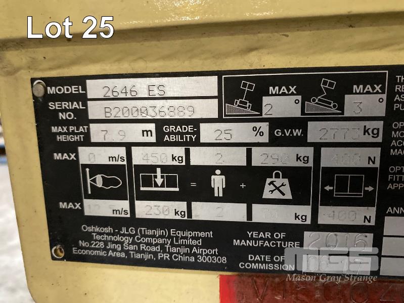 2016 SCISSOR LIFT, JLG EQUIPMENT