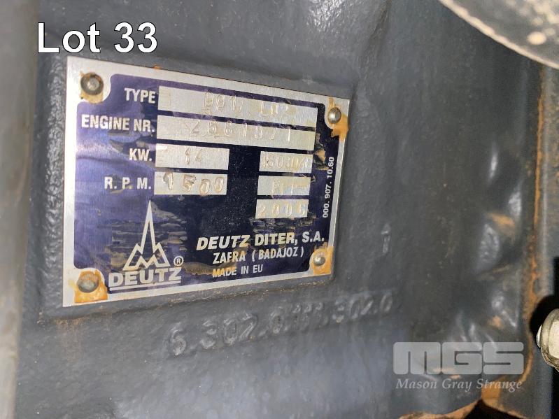GENSET, 2007 CENTRAL DIESEL, 14kw POWERED BY DEUTZ, D910L02 TWIN CYLINDER DIESEL ENGINE HOURS: 88.59 SHOWING MECO ALTE SPA ALTERNATOR TYPE: ECSO 28-S/4 16KVA @ 1500RPM WITH DEEP SEA DIGITAL CONTROL INTERFACE MOD: 5210 3 PHASE, 415V, SKID MOUNTED