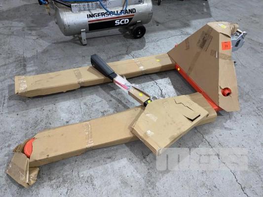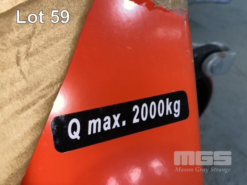 PALLET JACK, 2,000kg CAPACITY, ORANGE, AS NEW
