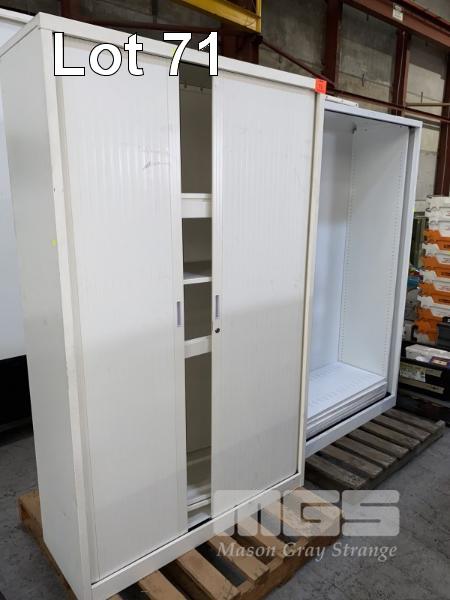 2 x CONCERTINA DOOR STORAGE CABINETS, WHITE STEEL, 1200 x 1980mm (H), 1 x ALL FAULTS