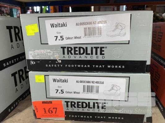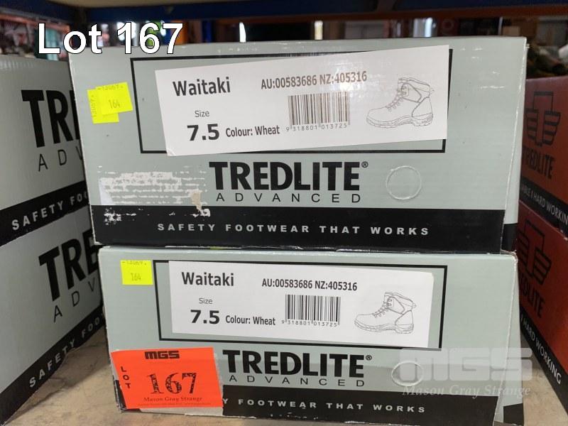 2 x PAIRS WORK BOOTS, TREDLITE, ADVANCED, WAITAKI, WHEAT, SIZE 7.5