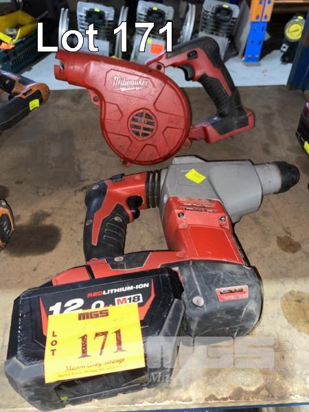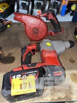 MILWAUKEE ROTARY HAMMER DRILL, M18 WITH BATTERY, 12.0AH & CORDLESS BLOWER (NO CHARGER)